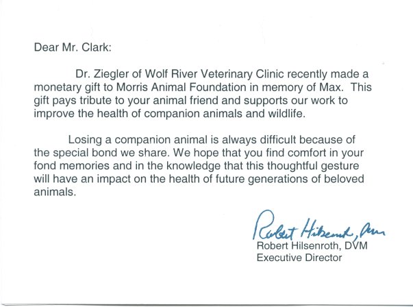 Dr. Ziegler was Max's Vet. He went above and beyond what was required of