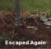 He was a runner and needed to be kept on a leash at all times. Care was always taken to insure that he would not hang himself trying to escape but in a freak accident, he managed to any way. Although his cable provided enough slack to go over the 7 foot wall he jumped, the cable got caught on an obscure eye hook before he jumped the wall and cut him short. He went into a horse stall and jumped up into the manger. This put him closer to the top of the wall and within reach. There was an eye hook on the front of the manger that is sometimes used to hold a horse when it's hoofs are trimmed. His cable got caught on this hook and cut him short by three feet and he wasn't able to reach the floor on the other side. Max's naughtiness caught up with him and he literally hung himself.